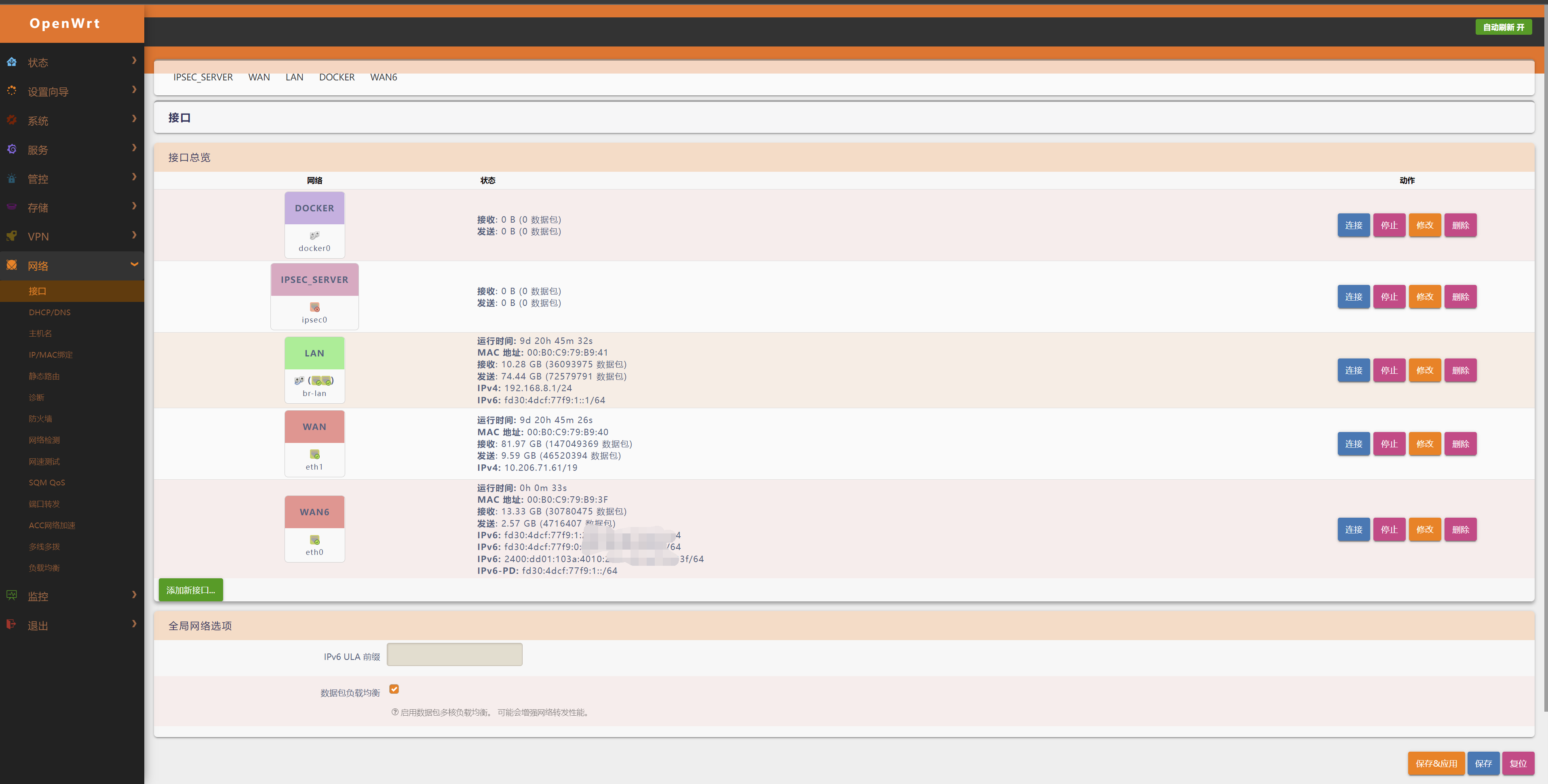 目光集中到WAN6接口,可以发现有3种地址分配: